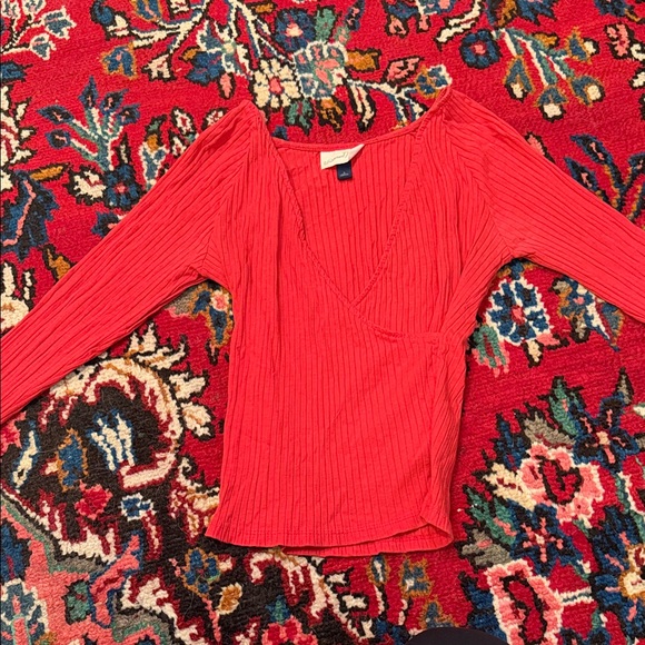 Universal Thread Red Ribbed V-Neck Blouse