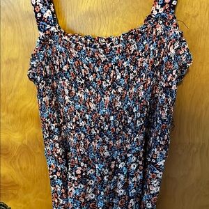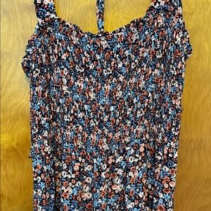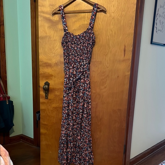 This vibrant red and blue floral sundress by Universal Thread is perfect for casual resort wear. Featuring a gathered elasticized bodice, it offers a breezy and comfortable fit. The maxi length and flowing silhouette make it an ideal choice for warm-weather outings. Comes with detachable tie belt.