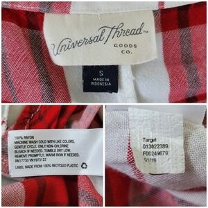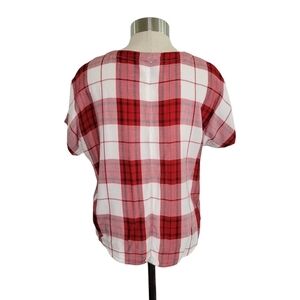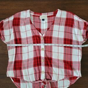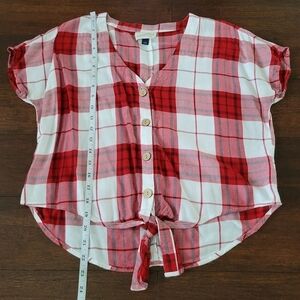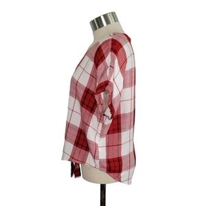 Universal Thread Red & White Plaid Tie Front Button-Up V-Neck Top Women's Size S