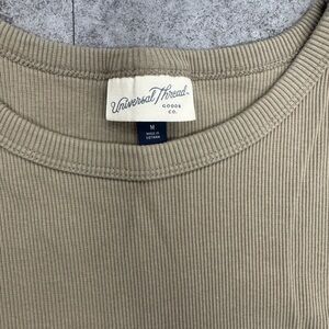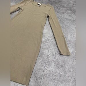Universal Threads ribbed sweater material style long sleeve dress. Size medium and fits a small to a smaller large. Lots of stretch. Good thick comfortable material. Gently used. Olive army green color