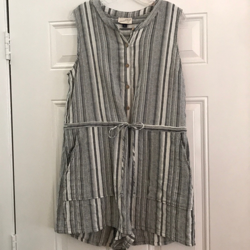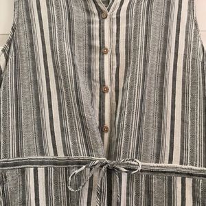 Cute gray/navy stripes, button down, with a draw string waist! Super light and perfect for spring and summer!
