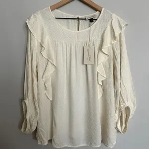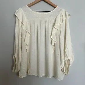 Details: Really cute ruffle top! Super soft and cozy material. Balloon type sleeves