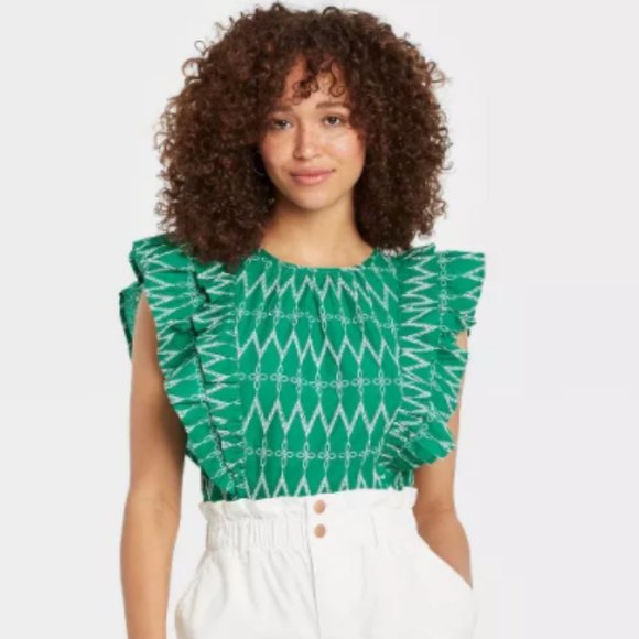 Universal Thread Ruffled Embroidered Blouse L