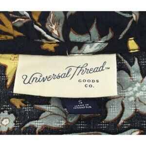 Universal Thread Ruffled V-Neck Navy Floral Long Sleeve Wrap Front Blouse SM