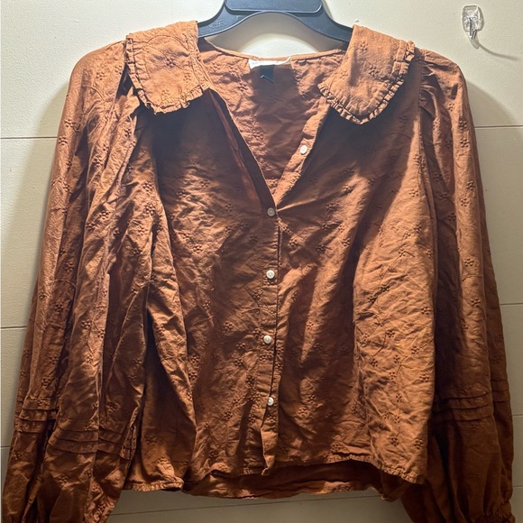 Universal Thread Rust Brown Button-Front Ruffle Collar Blouse