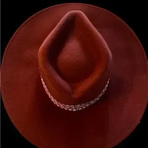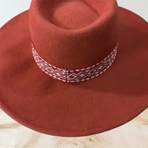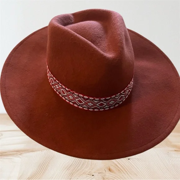 Stylish rust hat with a unique patterned band. Perfect for any occasion. No Tag.