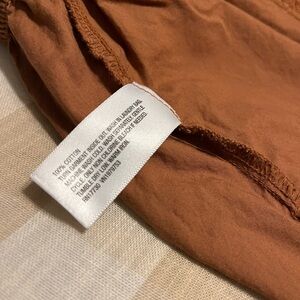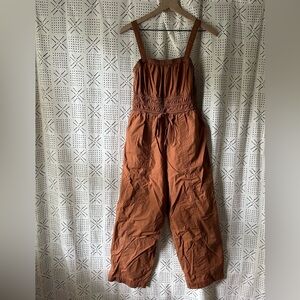Flattering and super comfortable rust jumpsuit. Perfect for early fall weather or layering. Features buttons on straps for adjustable fit.