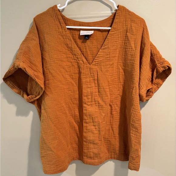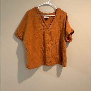 Chic rust blouse with a flattering V-neck. Soft fabric for everyday wear.