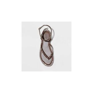 Give a fashion-forward look to your footwear collection with these Nikki Studded Thong Sandals from Universal Thread. These brown thong sandals are detailed with metallic stud accents on the straps for edgy style. These comfortable flat sandals complete with a buckled ankle strap lend an adjustable fit, and you can pair them with anything from a tee and jeans to sundresses to create a variety of ensembles.
