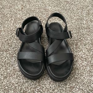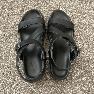 Black ankle strap and buckle sandals