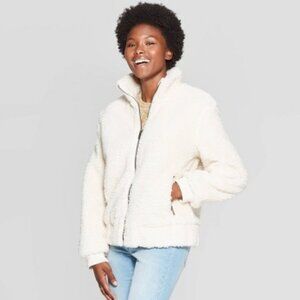 Universal Thread Sherpa Bomber Jacket in Ivory, Size Small