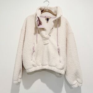 Worn and washed, in good condition. Button henley, Zipper front pockets. 100% Recycled Polyester. No trades.