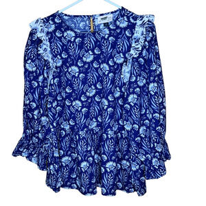 Universal Thread Shirt Blue Cottage Core Floral Ruffle New M
