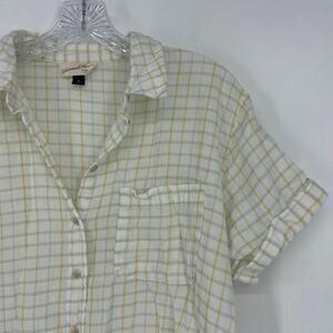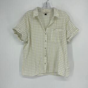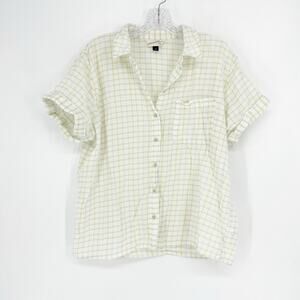 Universal Thread Short Sleeve Button-Up Plaid Top Size Medium