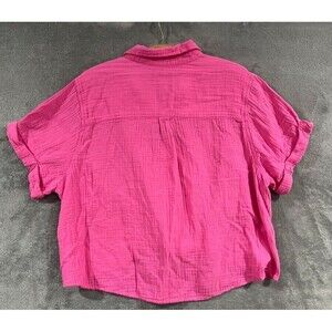 Universal Thread Short Sleeve Gauze Cotton Twist-Front Button Shirt XL Pink
