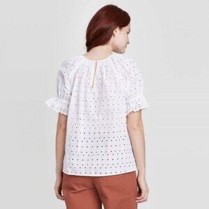 Universal Thread Short Sleeve Round Neck Eyelet Top New