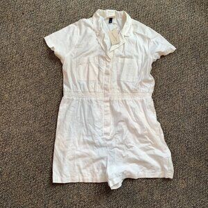 Universal Thread Short Sleeve White Linen Jumpsuit Romper XXL New