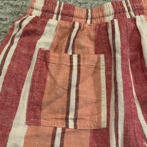 - Stripe shorts with reds, oranges, and creams colors