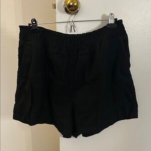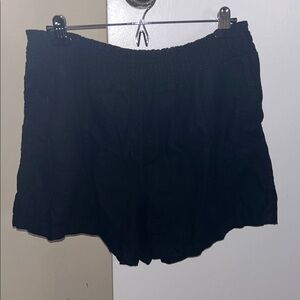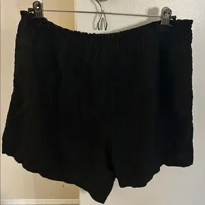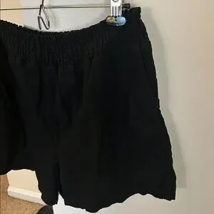 These shorts are in new condition and need a new home. Black with two pockets and a ruched waistband.