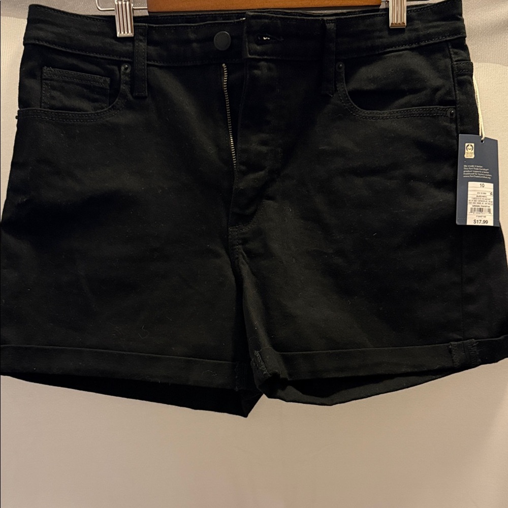 High rise midi black jean shorts by Universal Thread. Ideal for everyday wear. Size 10, NWT, approximated 3.5” inseam.