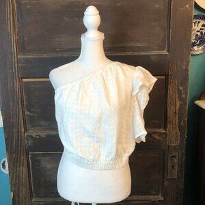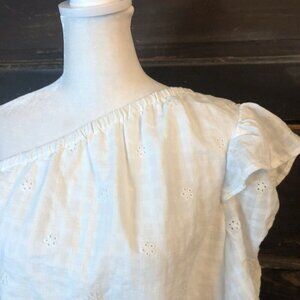 Universal Thread Size L One Shoulder Short Sleeve White Eyelet Top Cropped
