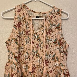 Universal Thread Sleeveless Linen Tie-Front boho blush floral dress beach midi S