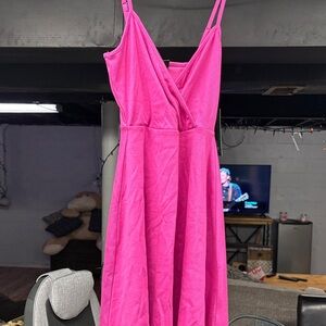 Chic strapless dress in vibrant pink. Perfect for casual outings or special events. Comfortable and stylish.