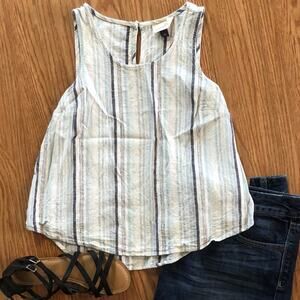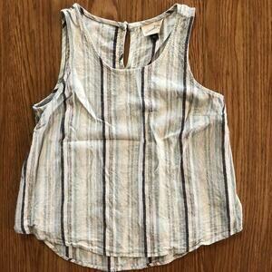 Universal Thread Striped Blue White Linen Crop Tank Top Womens Small