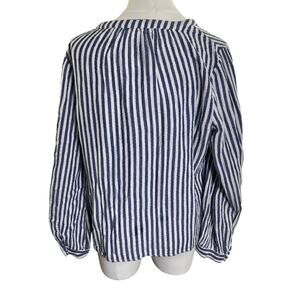 Relaxed and easygoing blue and white striped shirt by Universal Thread. Features a full button front, gathered neckline, and long sleeves with button cuffs. Made from soft 100% cotton (20% recycled content), this lightweight top is breathable and perfect for layering.