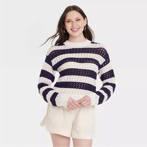 Navy and white chunky knit sweater. Super cute. Size xxl. I’m a medium and wore this oversized in the spring and summer with denim cut offs. Listed as a L cause it runs a little small. Good condition. Universal Thread.