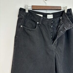 Universal Thread Super Wide Leg Jeans Womens 12 R Mid-Rise Black Denim Button