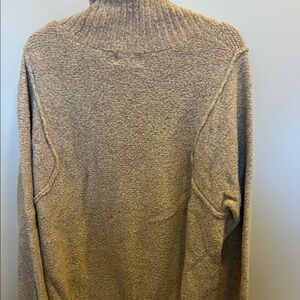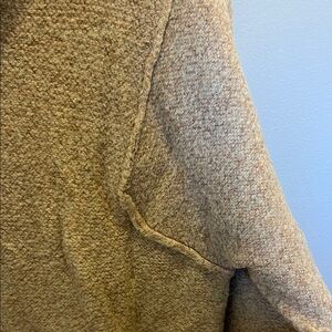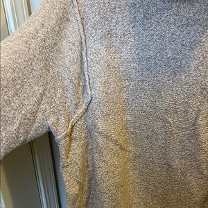 Warm heathered beige knit with visible texture. Shoulder/side detail seen in photos. Like new. Work twice.