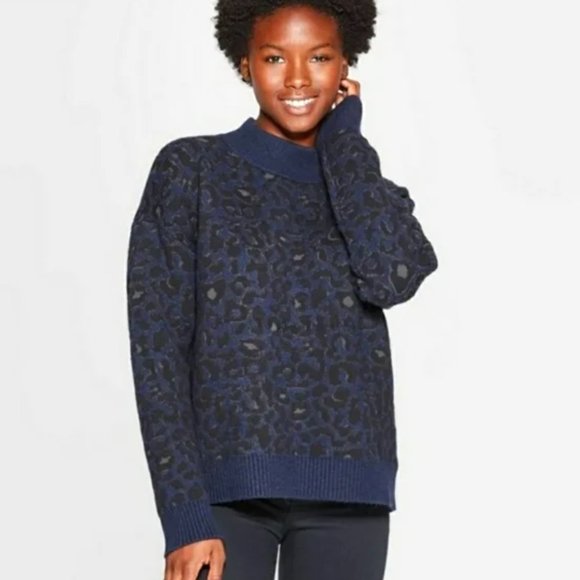 Universal Thread Sweater Leopard Print Blue Black (Size Medium)