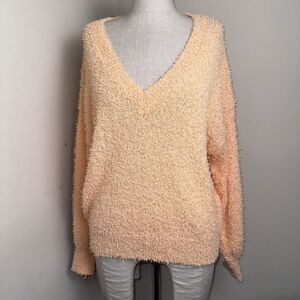 Universal Thread Sweater Orange Textured Knit V-Neck Pullover Size Medium EUC
