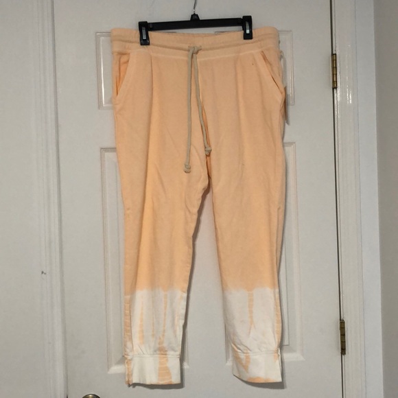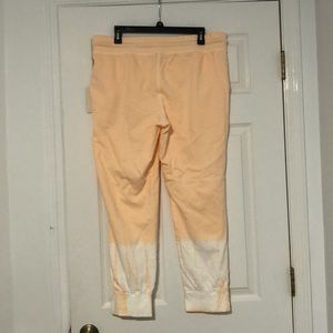 Orange and white tie-dye sweat pants. Two pockets, drawstring waist. 100% Cotton.