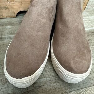 Stylish ankle booties by Universal Thread. Soft suede-like material. Slip-on design. Perfect for casual wear.