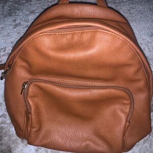 Chic leather backpack with front pocket. Ideal for daily use. Sleek and functional design.