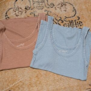 Tan and blue ribbed tank tops. Soft and comfortable, great condition, barely worn.