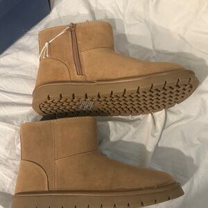 New with tags cozy tan winter boots. Soft interior lining. Durable sole. Perfect for cold weather. timeless style. Brand is universal thread and size 7