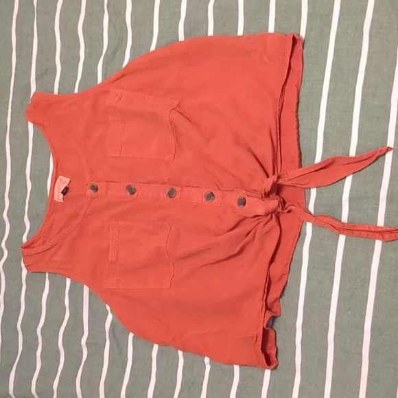 Item Description:Distressed Orange. Two pockets with 5 buttons and a tie. Soft material. No stains or snags.