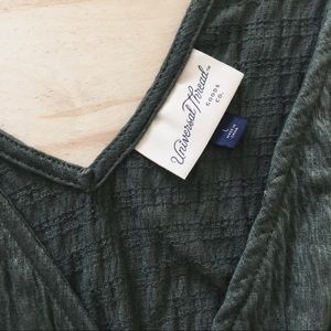 Universal Thread Brand forest green romper, size L. Worn twice. Low cut top! You could add a stitch near the bust to keep the tank top flaps from opening. Has an inner lining. Super cute and very soft!