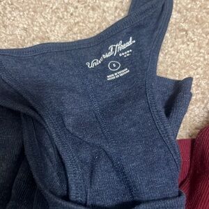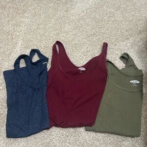 Set of three tank tops by Universal Thread. Includes blue, red, and green colors. Comfortable and stylish.