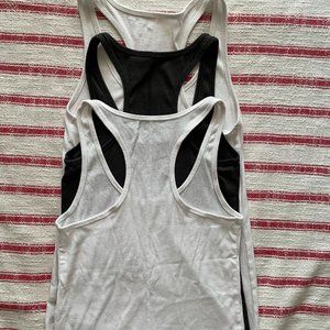 Cotton Blend Universal Thread racerback tanks. Set of 3, 2 white, 1 dusty black/grey. Barely worn, like new tanks! Get yourself this awesome deal of a set of three to mix and match!