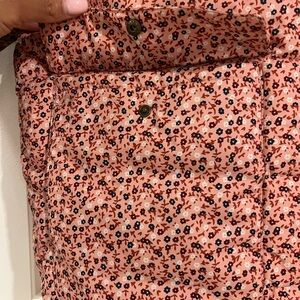 Universal Thread - Target jacket with a blue floral pattern. Cream cotton collar. Pink floral lining. Functional front pockets. Zipper