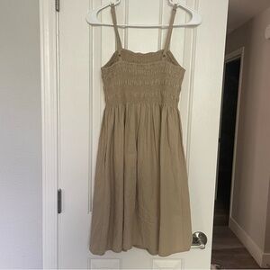 Only worn a couple times. Perfect summer/fall transition piece with a sweater or denim jacket. Adjustable straps. Unlined but material is fairly thick. I just wear nude undergarments and no problem. Can also get away with no bra.