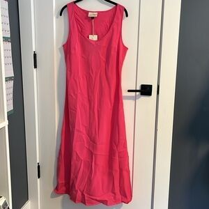 Basic summer wardrobe staple slinky slip sleeveless hot pink breezy casual long midi