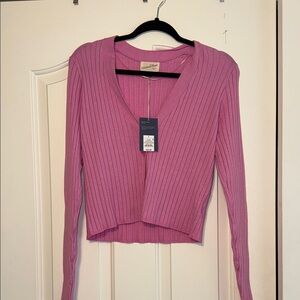 Universal Thread Target Pink Ribbed buttoned V-Neck Sweater