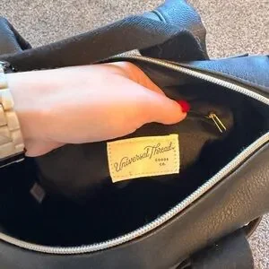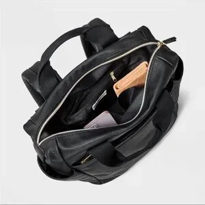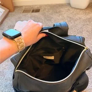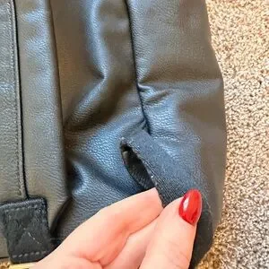 Excellent condition. Some light pilling at the bottom of the straps. Faux leather.