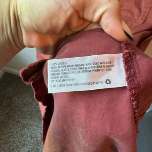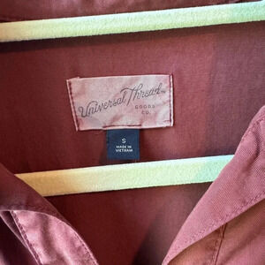 Universal Thread for Target red lyocell t-shirt dress. Two front pockets, V-neck with collar and cuffed sleeves. Back has flattering pleat detail. Hits just below knee for me, I am 5’1. Super soft and silky feel.