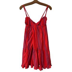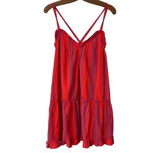 Universal Thread Tiered Mini Dress Red Purple Stripe Womens S Ruffle Trim Hem